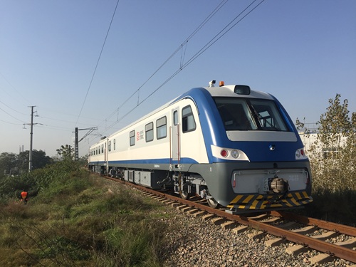 是一款全新概念且具有完全自主知识产品的钢轨打磨车。整车设有柴油发电机组供电和接触网取电两种动力源,两种动力源之间可实现无缝转换。将双源动力交流电传动技术应用于钢轨打磨车,实现接触网电力和内燃动力无缝转换,满足了连续打磨作业要求,保证了打磨质量,节能环保优势显著。可有效解决目前铁路正线上采用的内燃动力钢轨打磨车噪声污染、废气污染、发动机过热及随海拔增高降功等问题,提升作业效率、降低运营成本、减少碳排放量,符合节能环保高效率等政策要求。