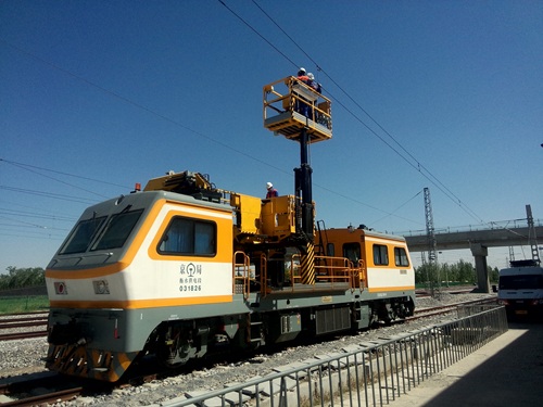 主要用于电气化市域铁 路接触网上部设施的安装、维修和日常检查、保养,也可兼作牵引车辆。该车采用国产化三平台作业装置,可满足市域限界下的行车及作业要求。