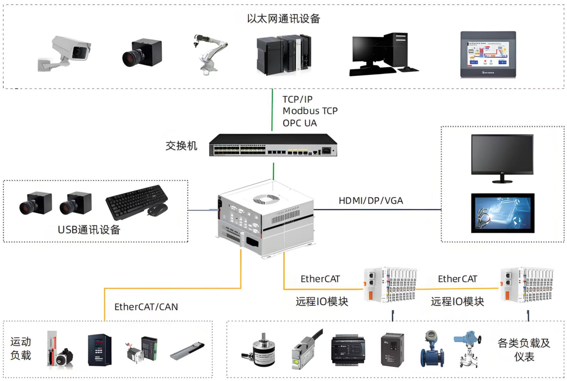 主要应用于风电设备、3C制造等对精度、可靠性、通信兼容性要求较高的控制场景,尤其适合需要多路CAN通讯、多路串口、多网段IP 地址或 EtherCAT 环网需求场景。
